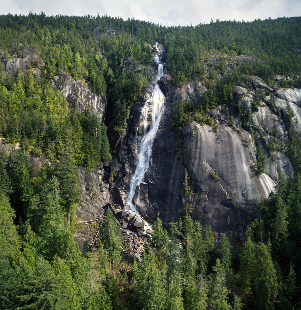 А это Shannon falls. Туристы снизу видят только нижний его каскад. К верхним каскадам ведет трейл, но обычно туда мало кто ходит. Все идут не сворачивая на вершины Чифа.