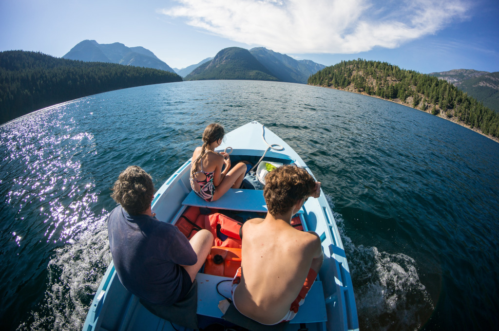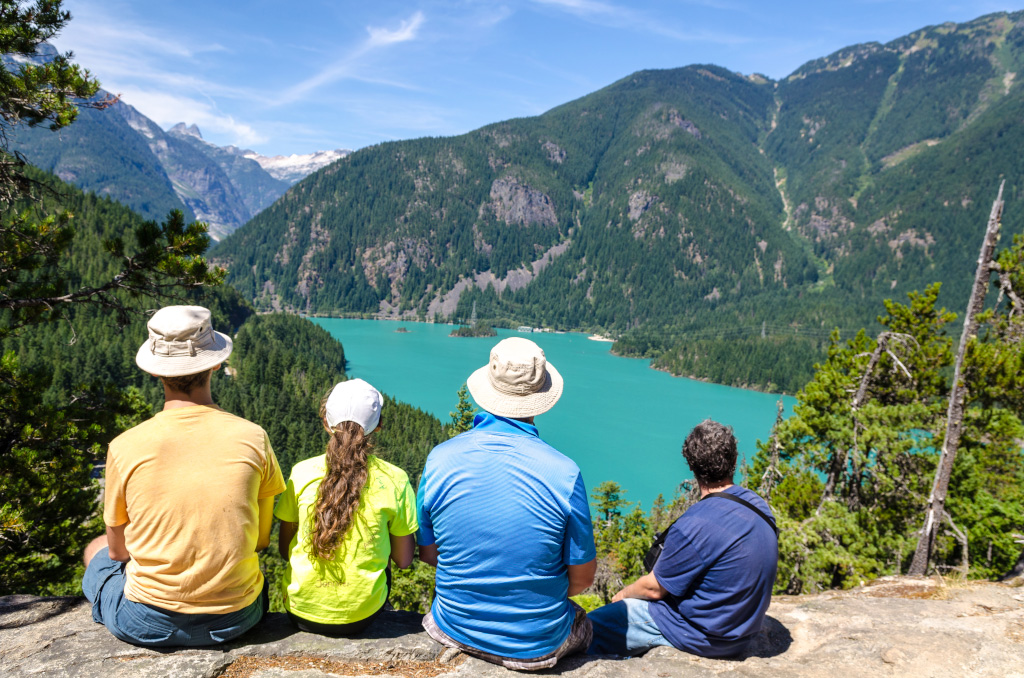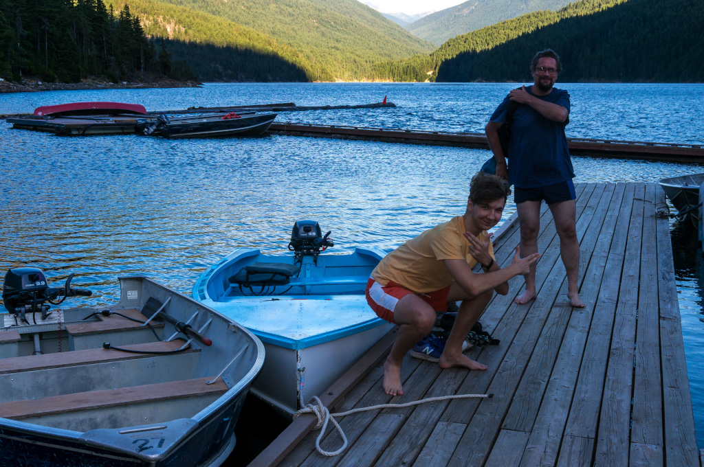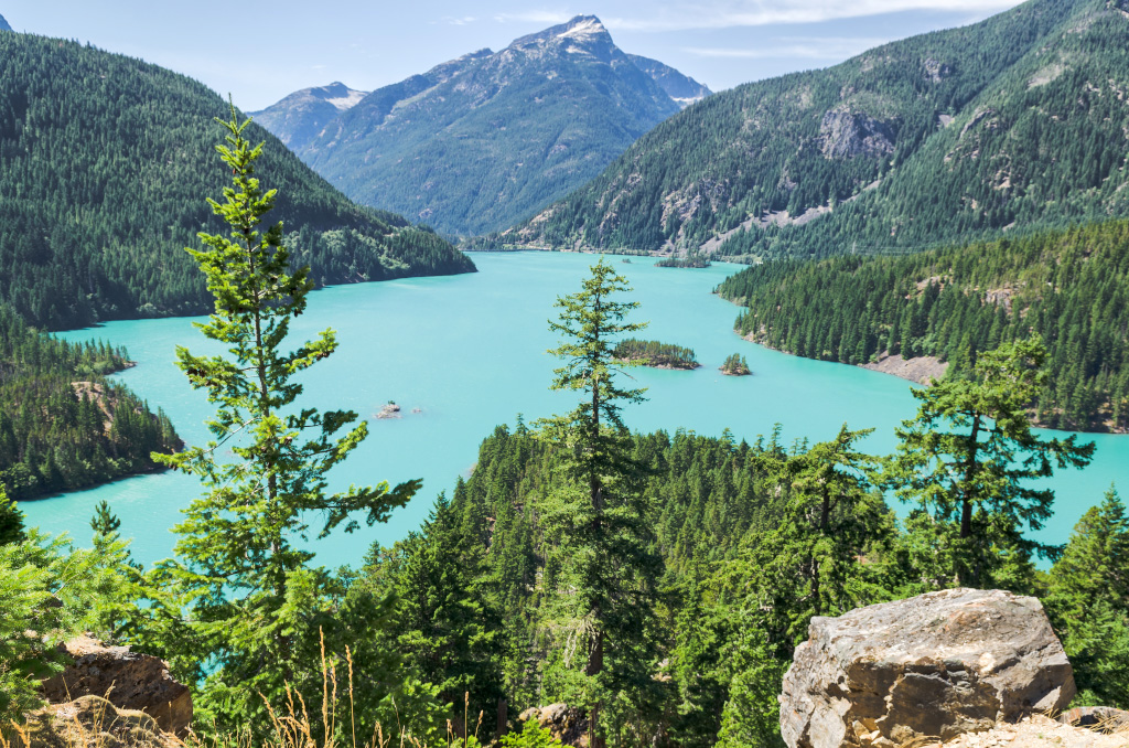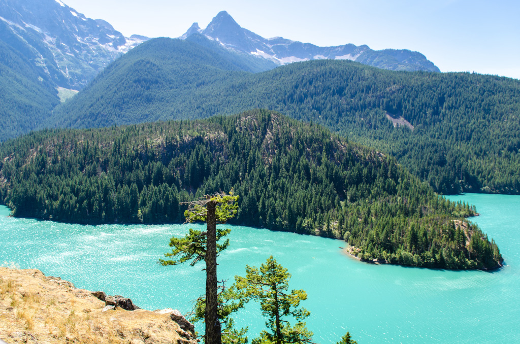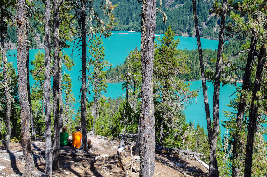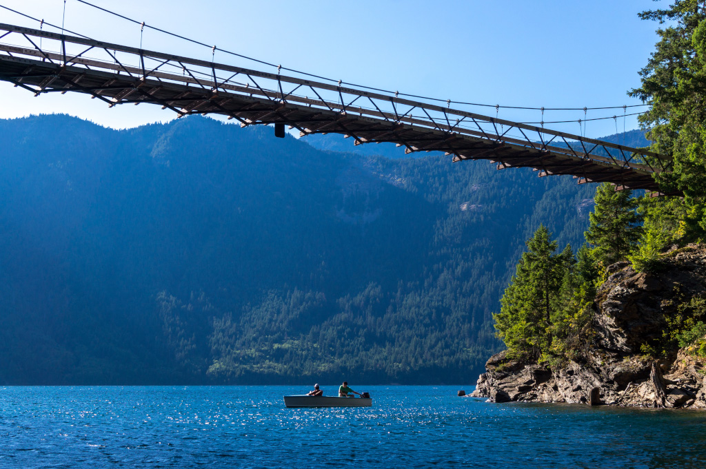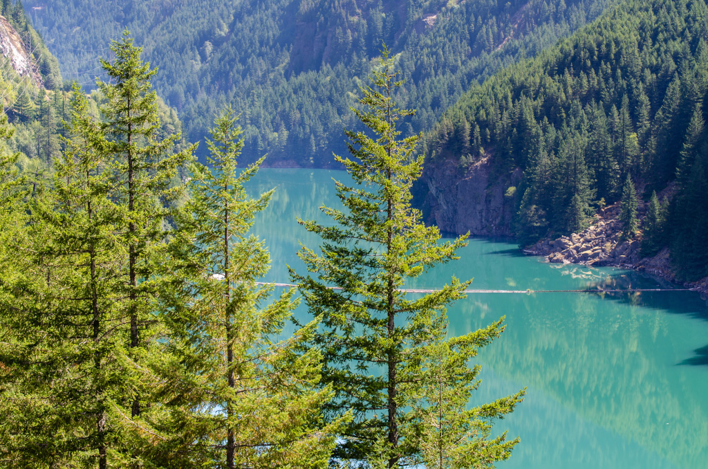 Сразу все по-делу, без лишних слов и прочей лирики. Докладываю: недалеко от нас по ту сторону границы есть национальный парк North Cascades, и в нем - купоросного цвета озёра. Там можно хайкать по окрестным горам и кататься по озеру на лодке, а также купаться. Поесть там негде. Вот и всё, а теперь все лишние слова, лирика и фотки.