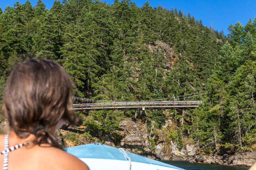 Часа через полтора добрались, наконец, до устья каньона. Ориентиром на него служит большой подвесной мост.