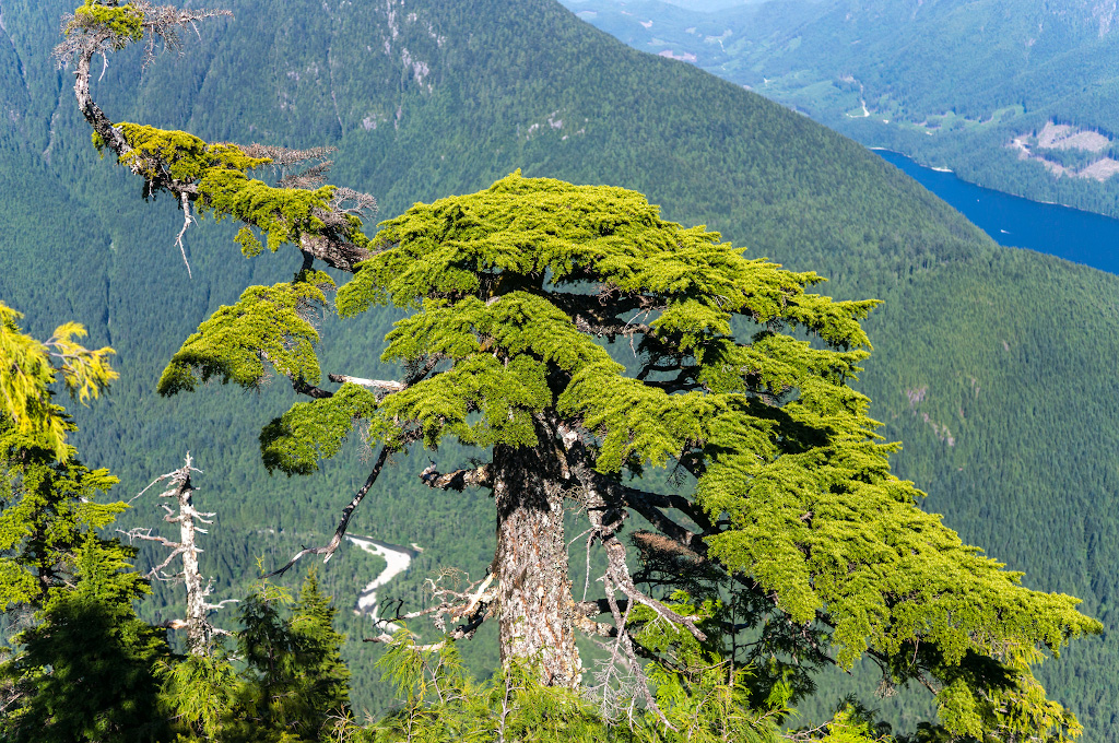 Выбрав денек пожарче, решили идти. Трейл не отмечен на картах, его нет и в книжке 103 хайка. Вроде бы и подъем относительно небольшой - 900 с чем-то метров, но уклон там суровый, никаких зигзагов, всю дорогу лезешь в крутую горку по рыхлому грунту с корнями.