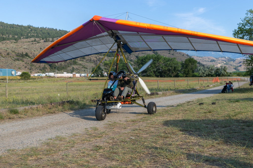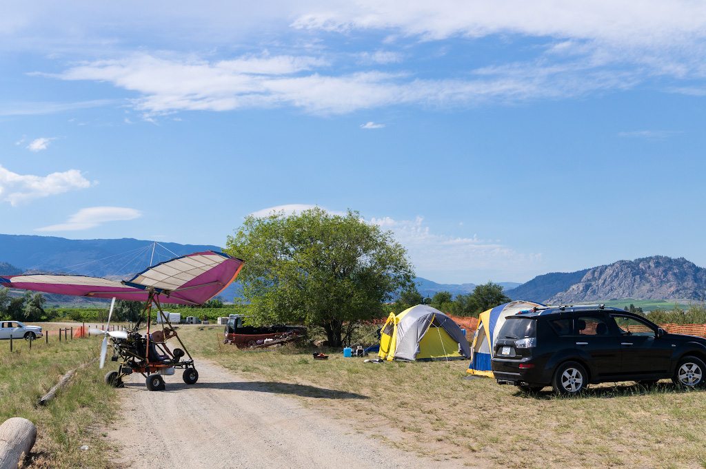 Приехали уже затемно, поставили палатки и завалились спать - утром надо было встать пораньше, собрать летательный аппарат и пока воздух спокоен, полетать на нем. То, что день будет жарким, ощущалось уже в 5 утра. С такой температурой воздух становится жидким, производительность крыла и пропеллера падает, трайк словно прилипает к полосе во время разбега: там, где он должен был бы привычно оторваться от земли, он продолжает катиться по полосе. И в полете интересно - периодически пересекаешь потоки теплого и прохладного воздуха (в зависимости откуда эта воздушная река дует) . Иногда было ощущение, что пролетаешь через жаркую сауну, и крыло проседало в таких потоках.