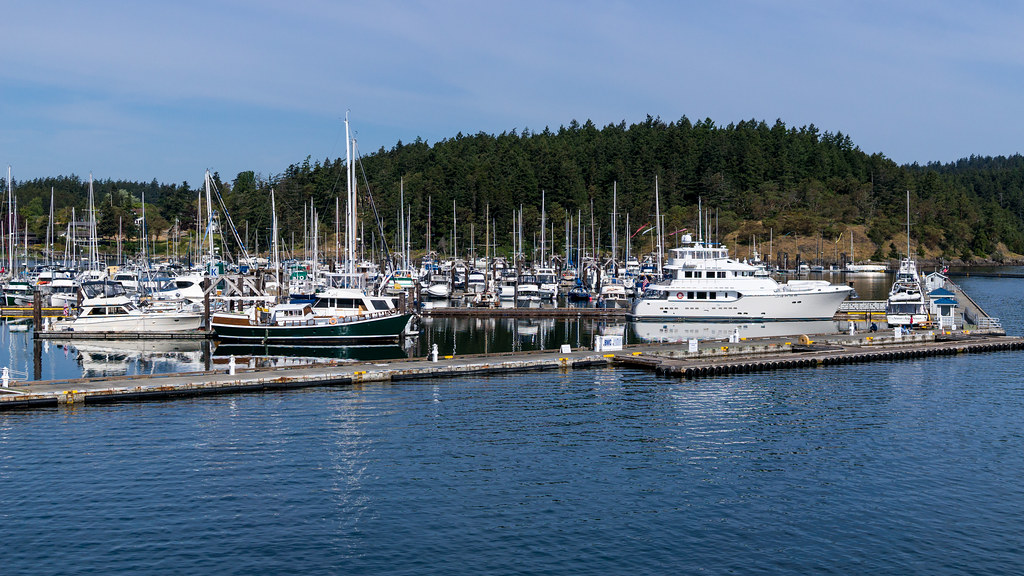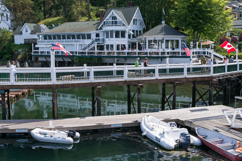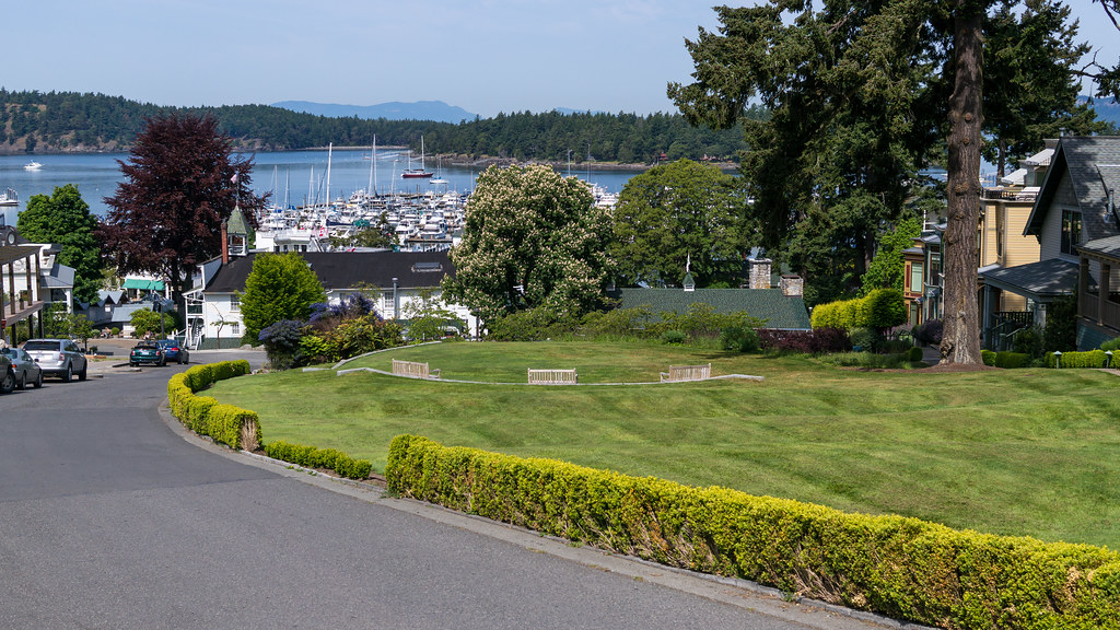 Изрядно поработав педалями, прибываем на север острова в город Roche Harbor. Ну как город... вот он весь. Зато в нем два ресторана, и оба открыты.