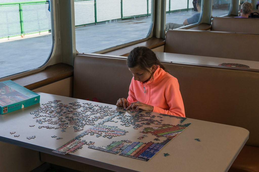 Что мы и сделали. Оставили машину в Анакортесе и налегке сели в паром до Friday Harbor. Надо сказать, что экономия получается небольшая. За парковку за два дня мы заплатили 25 долларов, и столько же стоил билет на двоих на паром. Но идея была не сэкономить, а заставить себя передвигаться на великах, чтобы нам это не стоило.