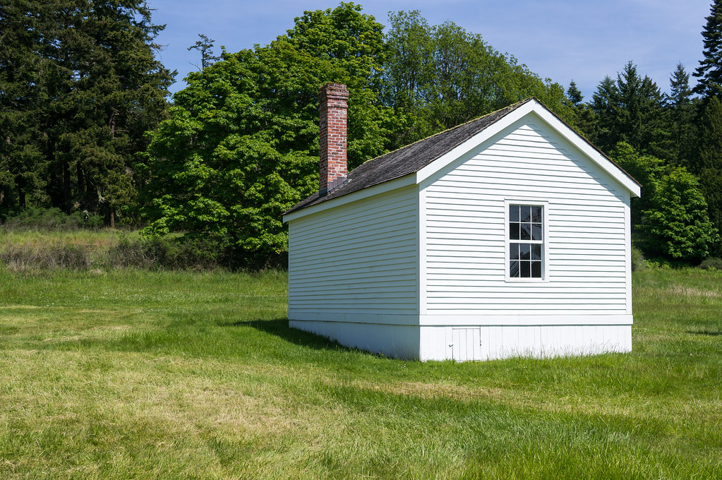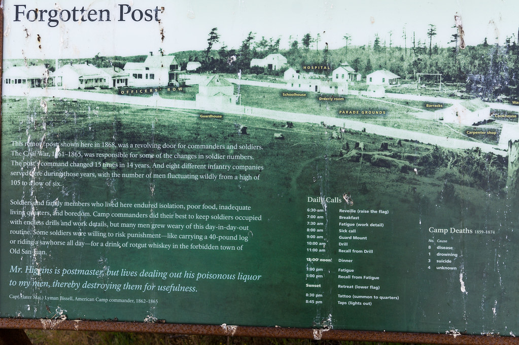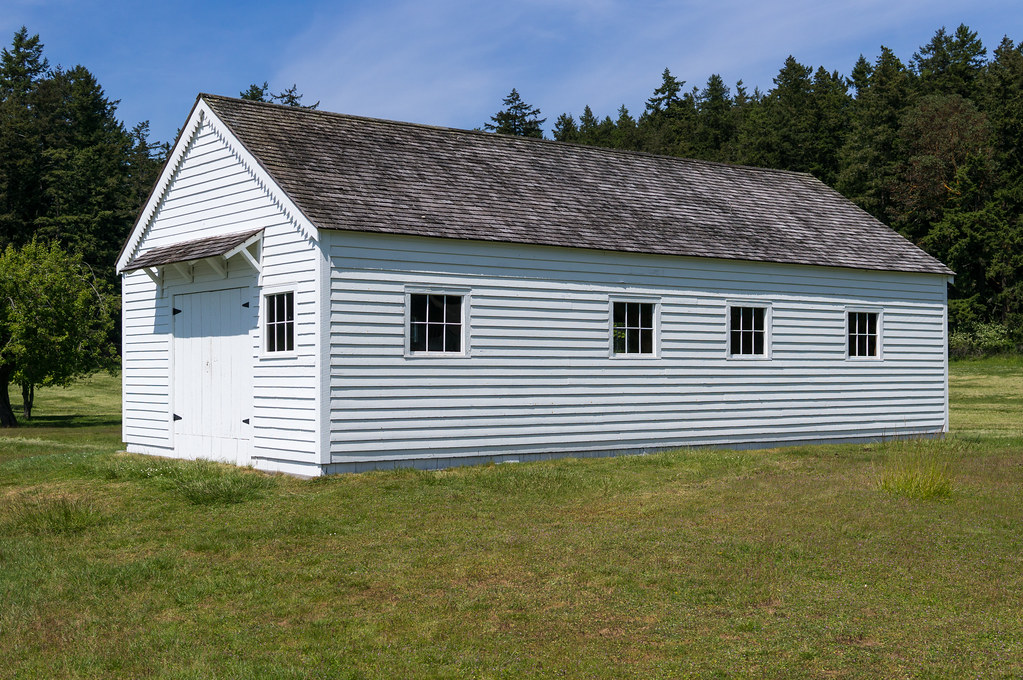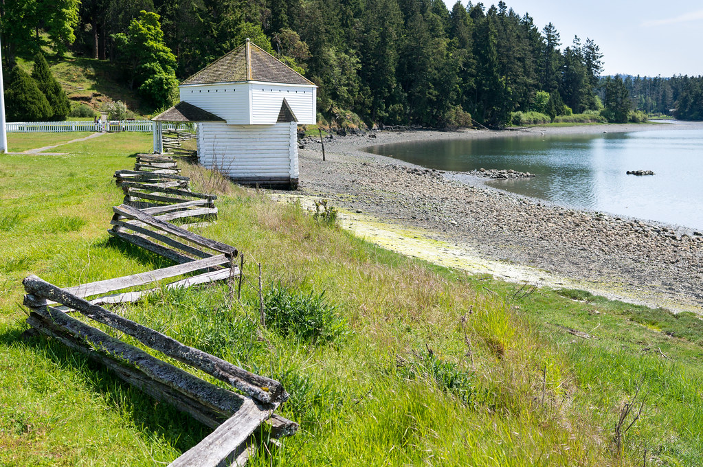 Американский лагерь. Американцы подошли к вопросу не так основательно, как богатые англичане. Ну что с них взять, страна была небогатая. Солдаты разобрали свой старый лагерь на доски, перевезли их на остров, и построили домики опять. Американское правительство справедливо полагало, что конфликт не вечен, что рано или поздно им придется отсюда уматывать. Стало быть, зачем вкладывать средства в лагерь? Я думаю, что это говорит о том, как они примерно оценивали свои шансы на успех по разделу острова.