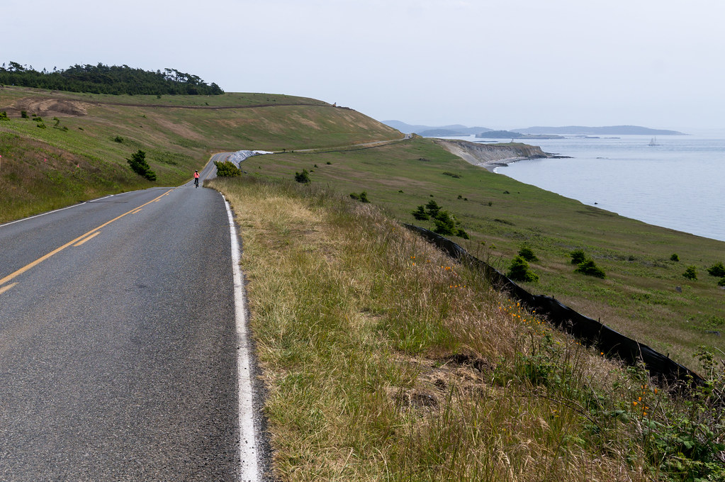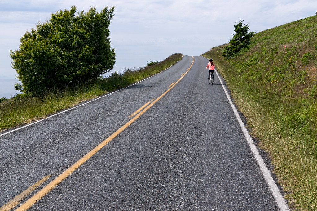 По дороге. Ездить на велосипеде по острову очень удобно и приятно. Мало машин, широкие обочины. Единственное - постоянные подъемы и спуски. В общей сложности мы набрали 1400 метров. Столько же и потеряли. Проблема в том, что под горку летишь быстро и с ветерком, но по инерции заезжаешь от силы на четверть - остальное надо выкручивать бешенно вращая педали.