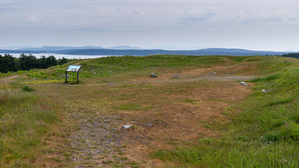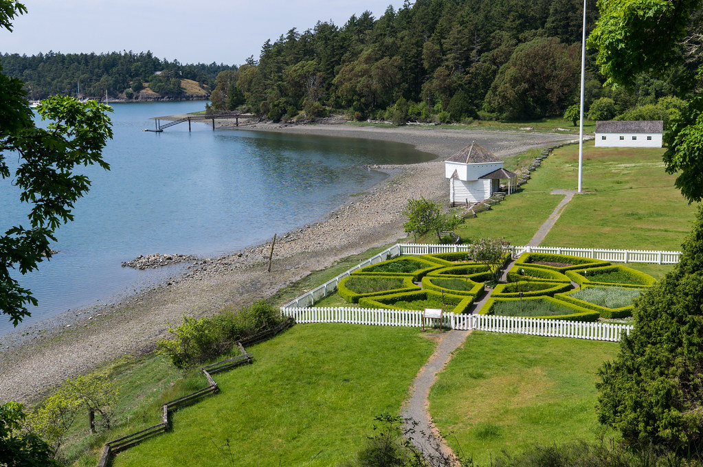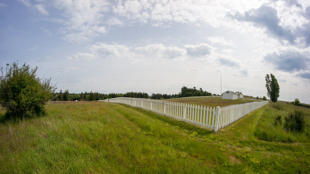 Дело было в 1859-м году. Прошло чуть больше 10 лет с момента обретения Штатами независимости. Территориальные споры урегулировали попросту проведя границу по 49-й широте. Договориться договорились, а некоторые детали не уточнили. Например, остров Ванкувер отошел Канаде, поэтому в этом месте граница резко уходит на юг. В договоре было предусмотрено, что граница пройдет по воде между континентом и островом Ванкувер, но как раз там случились несколько островов, делящих пролив на два канала... В договоре не уточнялось по какому из двух каналов - по Харо, который западнее, или по восточному Розари.