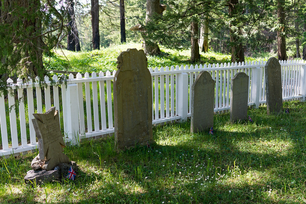 Чуть-чуть дальше, поднявшись в горку, находим старое кладбище. За 12 лет в лагере четверо утонули и один был застрелен по случайности своим же собственным братом. На камне эпитафия от скорбящего брата - "я не хотел, я нечаянно!".