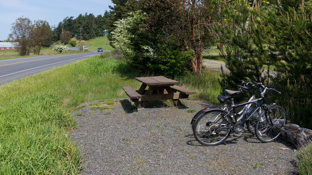 В первый день нам предстояло проехать порядка 40км. Friday Harbor находится примерно посредине острова, а Английский лагерь расположен в северной его части. На следующий день мы собирались в Американский лагерь - это еще около 20км в одну сторону, но на юг. Забегая вперед, всего за два дня мы наколесили чуть больше 80км.