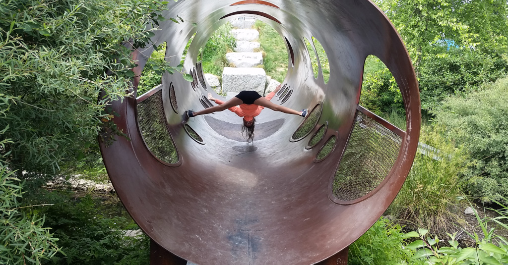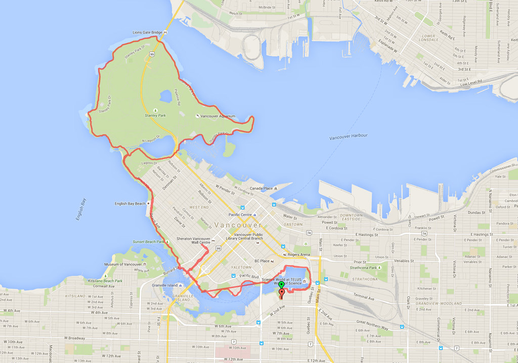 Надо пользоваться тем, что мер в Ванкувере - сумашедший, который сбрендил на почве велосипедизма. Он понастроил всюду велосипедных дорожек, так что любой shiny helmet может безбоязненно в свое удовольствие кататься по улицам и набережным города. Пользуемся - 26км сегодня. Дети заявили, что они выросли из детского велосипеда, а поскольку велосипеды у нас не подросли, мне пришлось эти 26км ехать на почти-что детском велике.