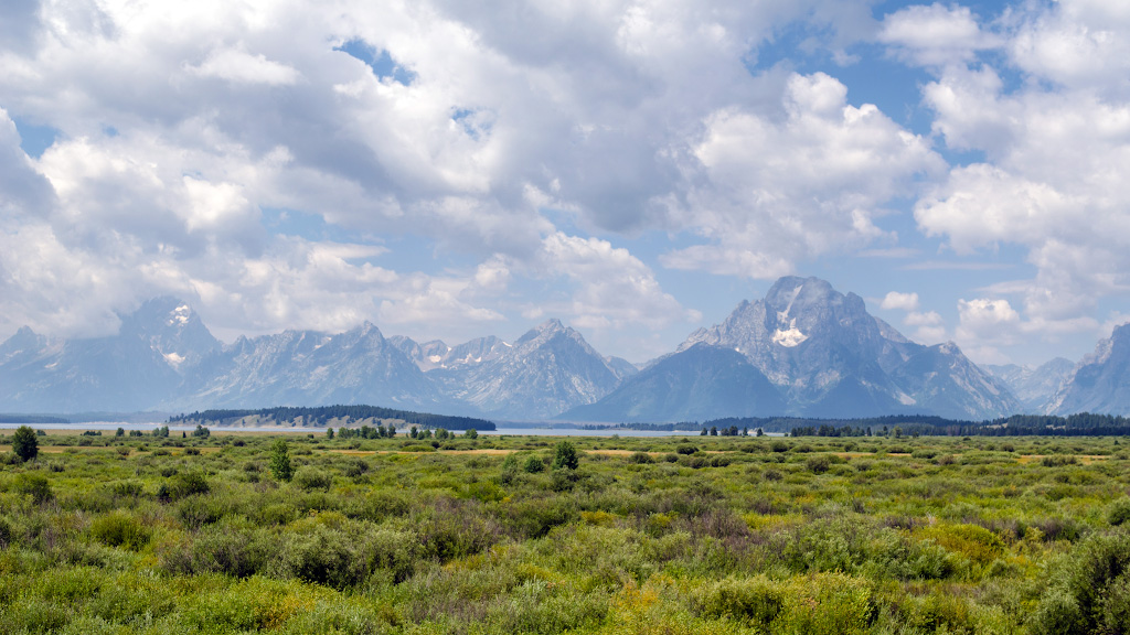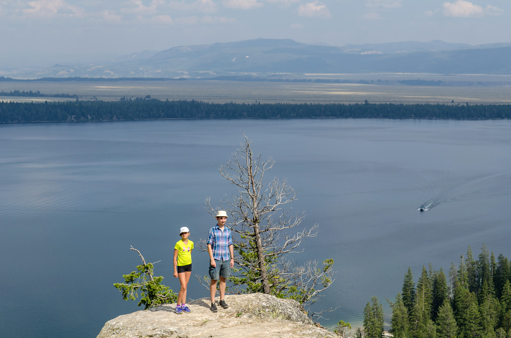 Чуть южнее знаменитого Yellowstone есть небольшой и малоприметный парк, на который после осмотра бурлящих и кипящих достопримечательностей Йелоустоуна обычно не остается пара. Идея Grand Teton заключается в каскаде озер, в которых отражается скалистый хребет, зубасто громоздящийся на заднем плане. Соответственно, основное занятие в этом парке - это фотографироваться на фоне упомянутых озер и скал, а в отдельных случаях клинической неусидчивости на одном месте - хайки в эти самые горы. Обеспеченный турист также может позволить себе катание на бурлаках на лодке по озеру.