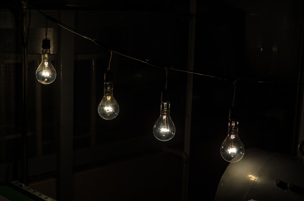 В итоге, электростанция дала свет. Сперва на 4 лампочки. Почему 4 лампочки, а не одна? Промышленный генератор дает 480В, а лампочки по американским стандартам - 110В.