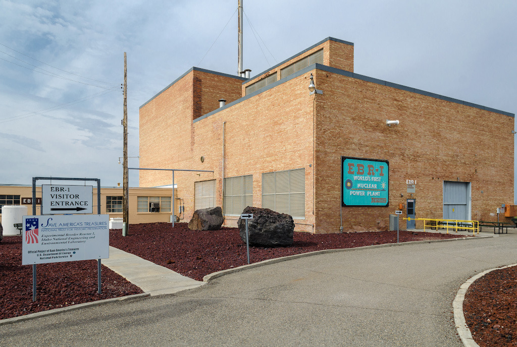 Так и первая в мире атомная электростанция, EBR-1 (Experimental Breeder Reactor) не особо привлекательная снаружи. Ну кубическая постройка из кирпича, и все тут. Даже украшения в виде двух здоровенных камней не сильно помогли.