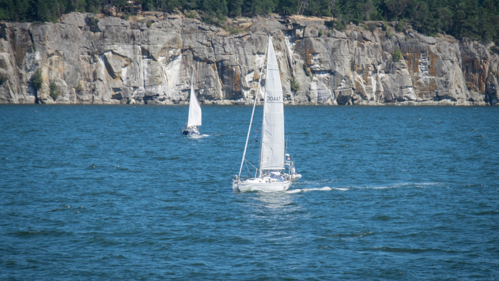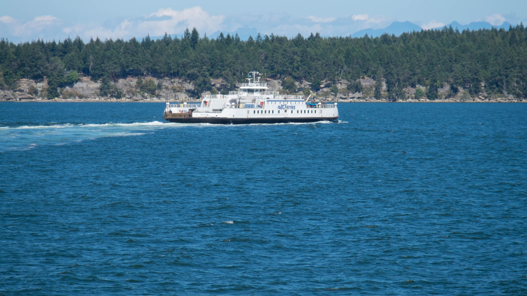 Пропустили всего один паром и вскоре на всех парах двигались в кафе на верхней палубе за лососем с салатом. Конечно в результате пришлось пожертвовать парой пунктов из намеченного на этот день плана, но в целом ситуация оставалась под контролем. Пока шли к Нанаймо, было время почитать инструкцию к новому фотоаппарату Fuji, да попрактиковаться с ним на окружающих пейзажах.