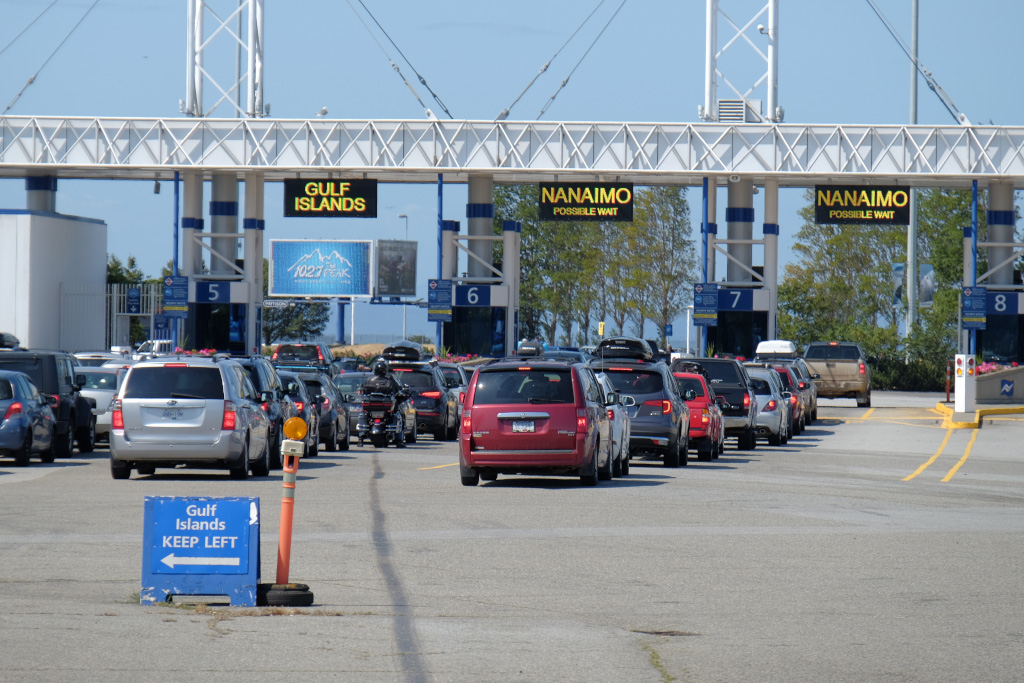 Когда мы поехали на север, то поехали совсем не в ту сторону, в которую было нужно. Вопреки всякой логике мы поехали на юго-запад - на терминал в Tsawwassen. И были несказанно удивлены, что о резервации на паром, сделанной очень заранее, никто даже не слышал. Ну конечно, если мы должны были отправляться совсем с другого терминала - с Horseshoe bay! Мне даже послышался гудок где-то вдалеке: "Это тронулся поезд, на который ты не попадешь". А тут еще и утро субботы, первый день длинного выходного... день, когда очереди на паромы длиннее самих выходных.
