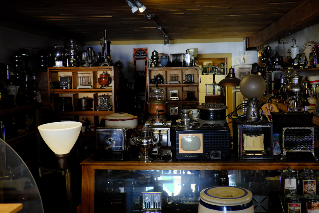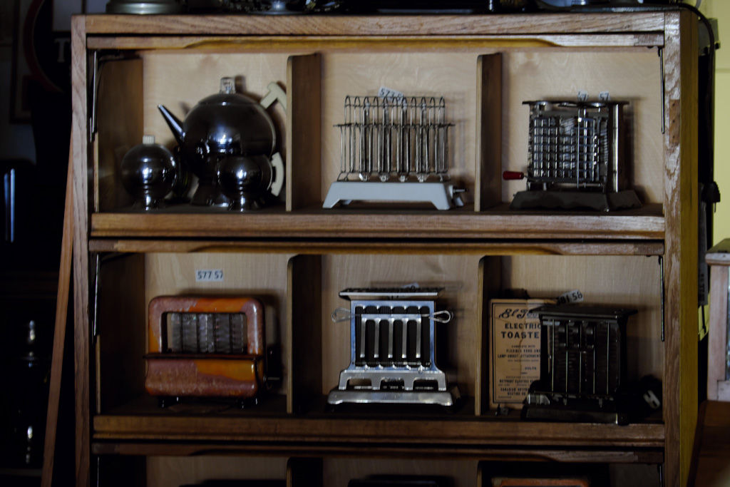 Из-за задержки с турбинами по дороге (звучит как у нас машина с турбореактивными двигателями... но нет, турбины были не наши), мы еле успели приехать до закрытия последнего кафе, где спешно заказали пиццу, которую уже ели в номере. А вот на следующее утро мы посетили кафе при гостинице, где, помимо прочего, собрана интереснейшая коллекция тостеров и чайников.
