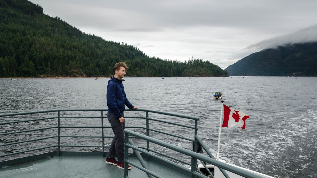 Наше судно не идет обратно прямиком в Порт Альберни. Нам еще на нем кататься около 6-ти часов, пройдя сперва через открытый участок моря, где мы видели плавник кита, и сделав 3-х часовую остановку в городишке Bamfield.