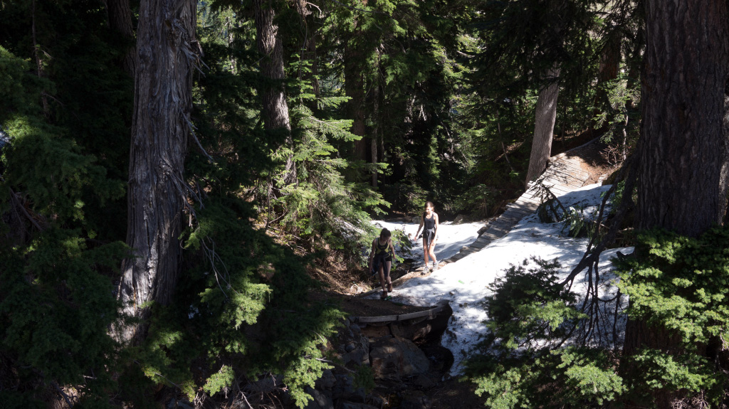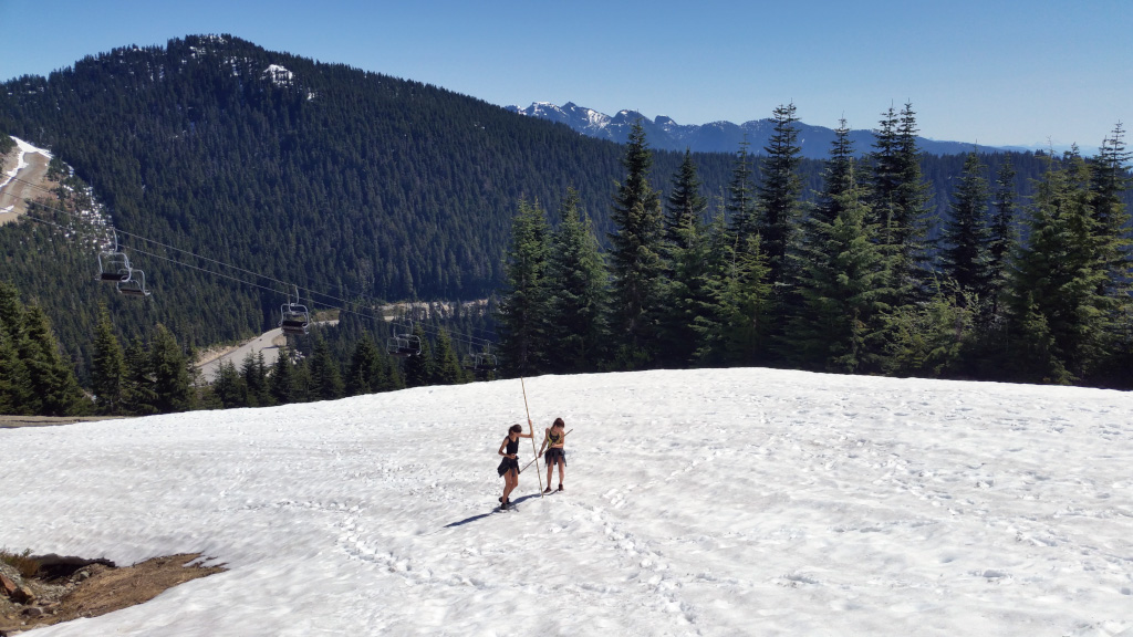 Пошли мы тут с девушками (с Ксюшей и ее подругой) в горы. В городе лето, а здесь снег еще лежит, и местами его много.