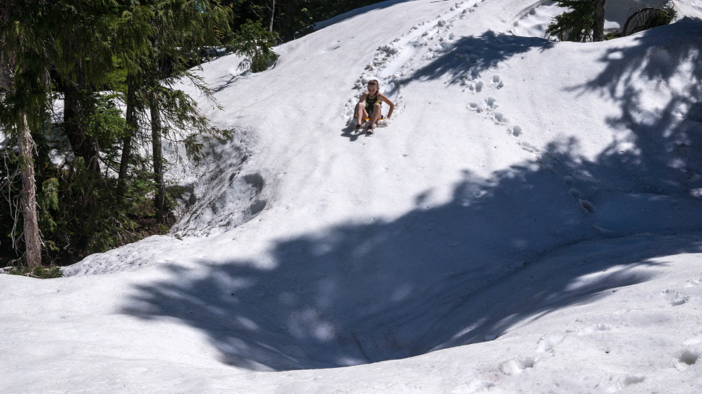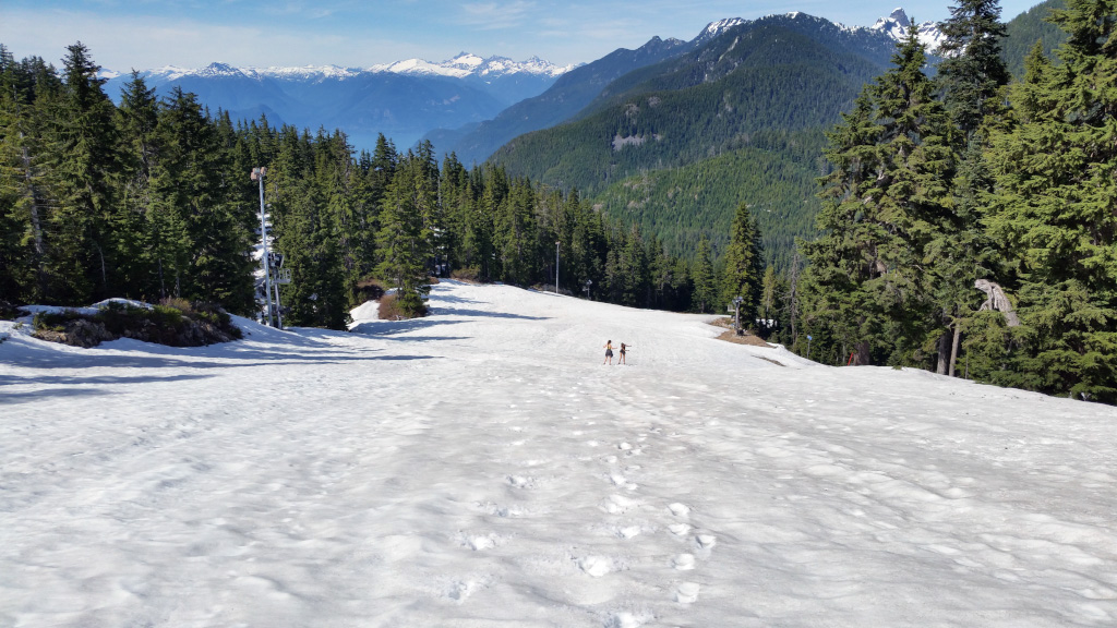 Сочетание воздуха с температурой градусов 25 с заснеженными склонами и лесом - это фантастика!