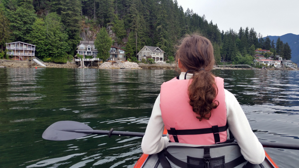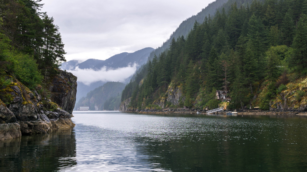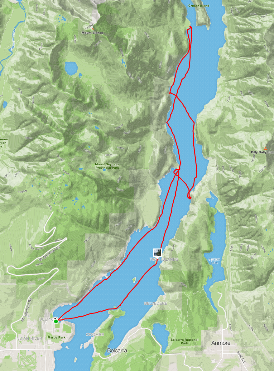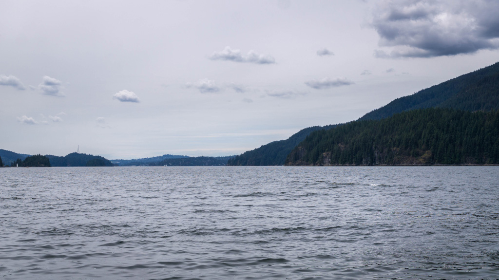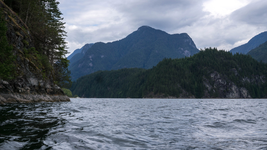 Ветер в спину, и мы довольно уверенно и быстро доходим до Lucky point километрах в 8 от старта. Здесь мы решили подождать остальных участников экспедиции. Но не усидели на месте, и от мыса Удачного пересекли Indian Arm к электростанции. Частично мы шли против ветра, и призадумались, стоит ли идти дальше...