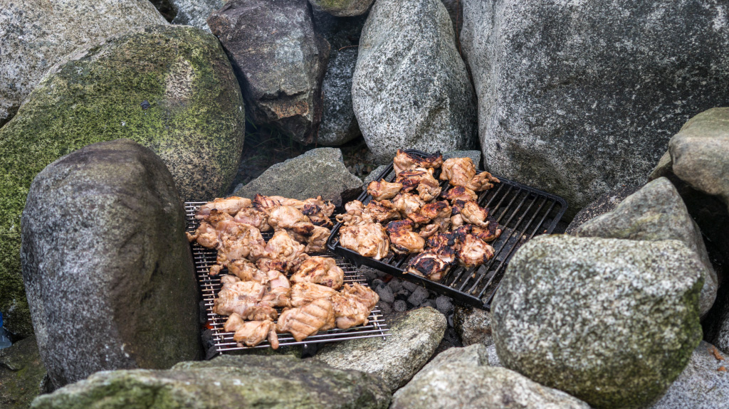 В общем, доплыли, разбили лагерь и присоединились к ужину ко всей большой честной компании.
