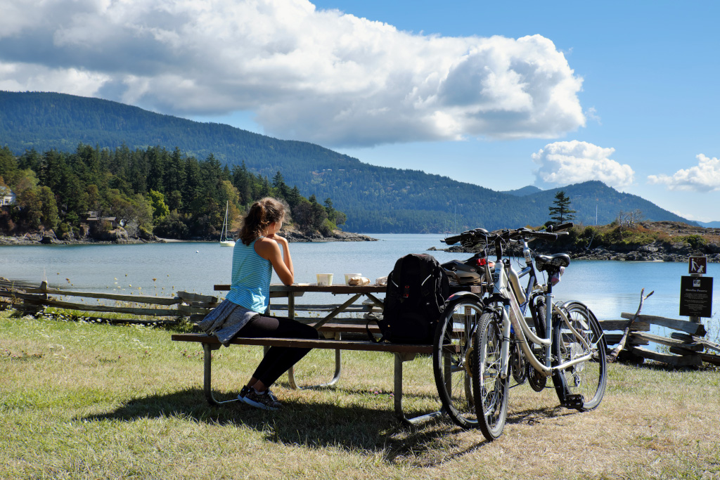 Вот мы, к примеру, собирались на велосипедах на остров Оркас. По привычной уже схеме: оставить машину в Анакортесе, с великами сесть на паром, а дальше на островах только педалировать. Чтобы было к чему стремиться, забукали резорт Розетта на другой стороне острова. Приятно же, колесишь по острову, взмыленный и измученный прибываешь в резорт, а там душ, бассейн, ресторация и всякая прочая дольчевита... По такой схеме мы уже объехали два острова архипелага: San Juan и Lopez.