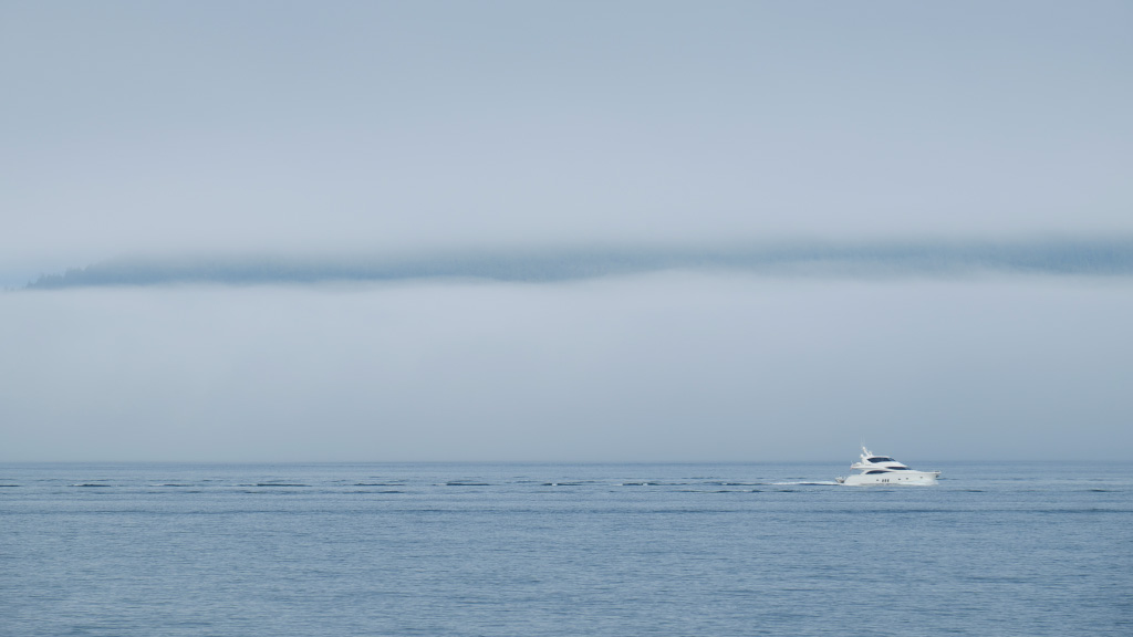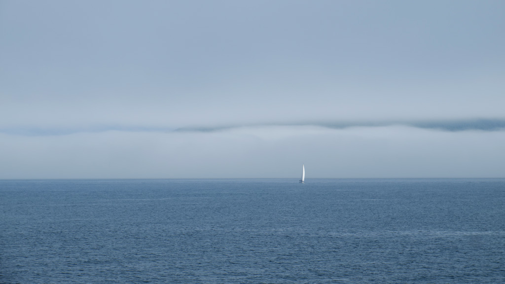 На море был легкий туман, а сверху не касаясь его висели облака. Наверное, интересно было бы полетать по щели между ними.