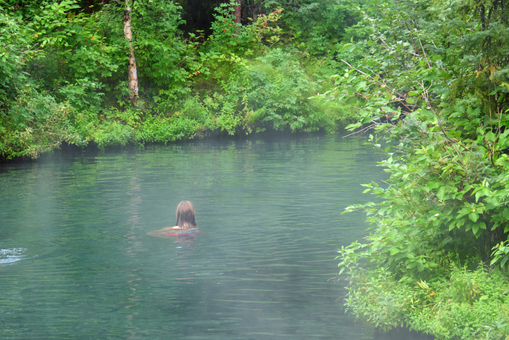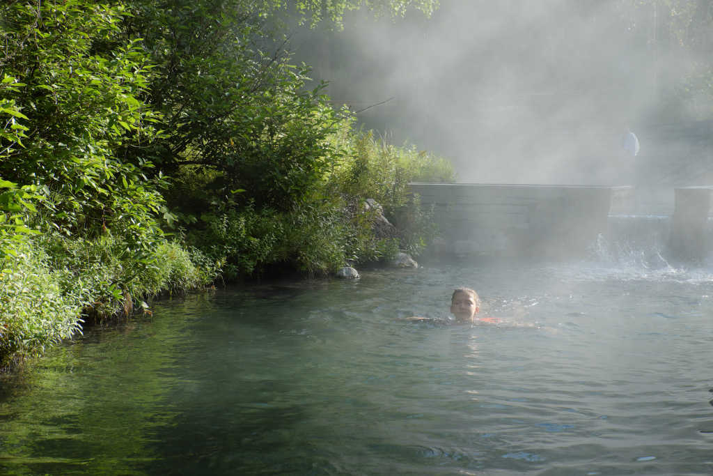 Весь день просидеть в горячей воде невозможно. Внутри скапливается столько тепла, что от него нужно как-то избавляться. В промежутках между купаниями в горячем источнике, мы остужались в ледяной реке по соседству.