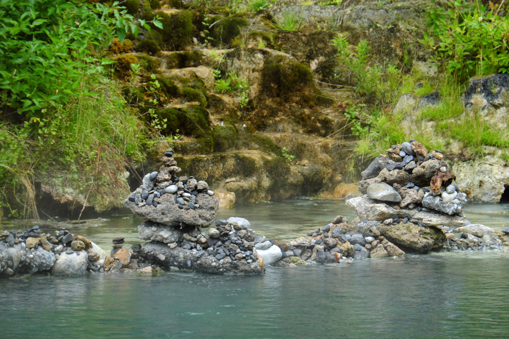 Небольшая местная традиция - взять со дна камешек, и охая и ёжась от потоков горячей воды, донести его до источника и оставить там. А потом быстро-быстро назад. У меня другая традиция - подолгу сидеть в самом теплом месте.