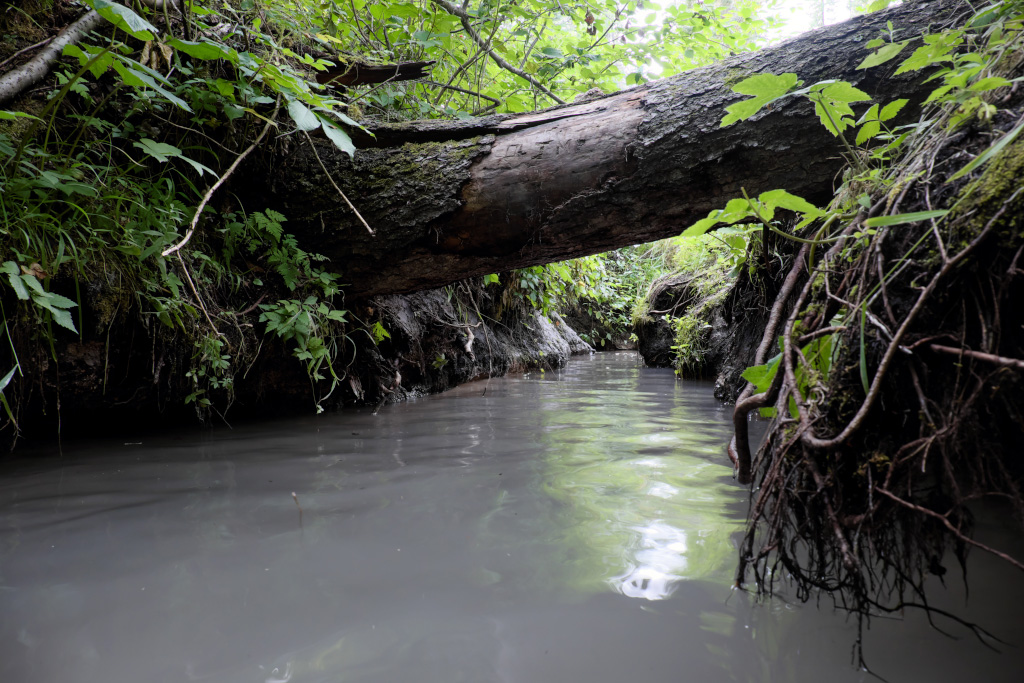 Еще дальше начинается небольшой каньон, в нем вода уже даже прохладная. С другой его стороны сюда течет обыкновенный лесной ручей.