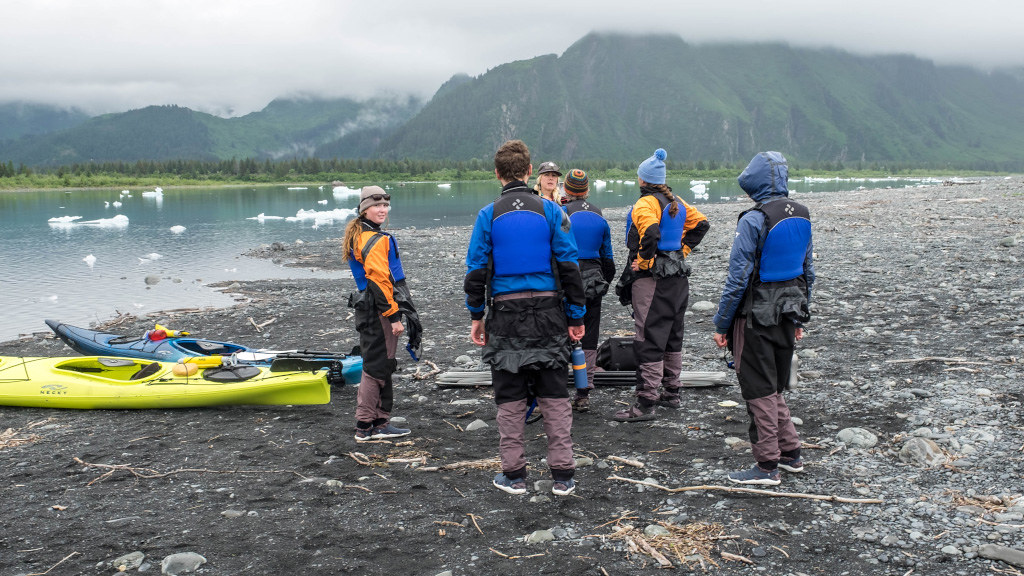 Проходим инструктаж. Всем выдали непромокаемые гортексовые костюмы. В таком не так страшно оказаться в ледяной воде. Всем сказано держаться вместе и подальше от айсбергов, доведено до сведения что делать, если перевернешься или потеряешься.