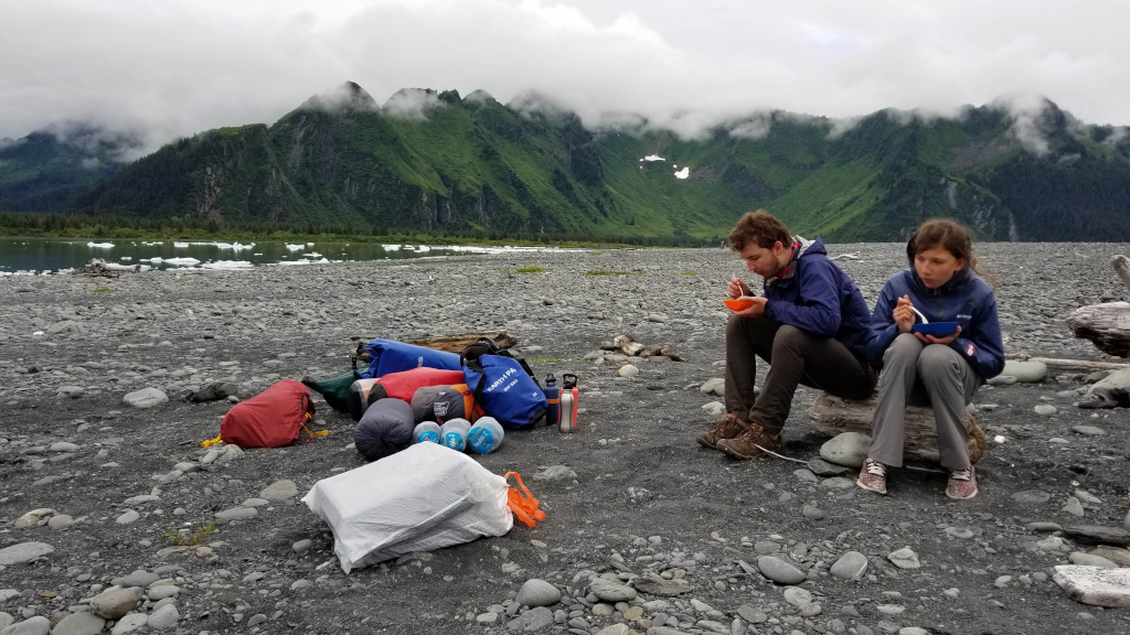 Название "медвежий" леднику было дано не случайно. Мы видели пару медведей в отдалении. Поэтому кухня была по всем правилам устроена на почтительном расстоянии от наших палаток, а вся еда тщательно упакована и закрыта.
