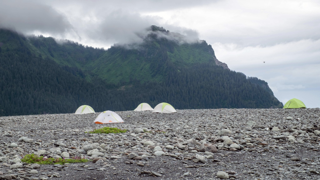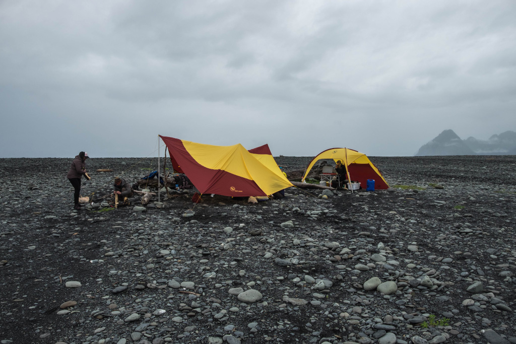 Выгрузившись с катера, первым делом поставили палатки. Здесь буду жить я. Дети расположились неподалеку.