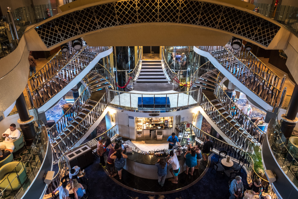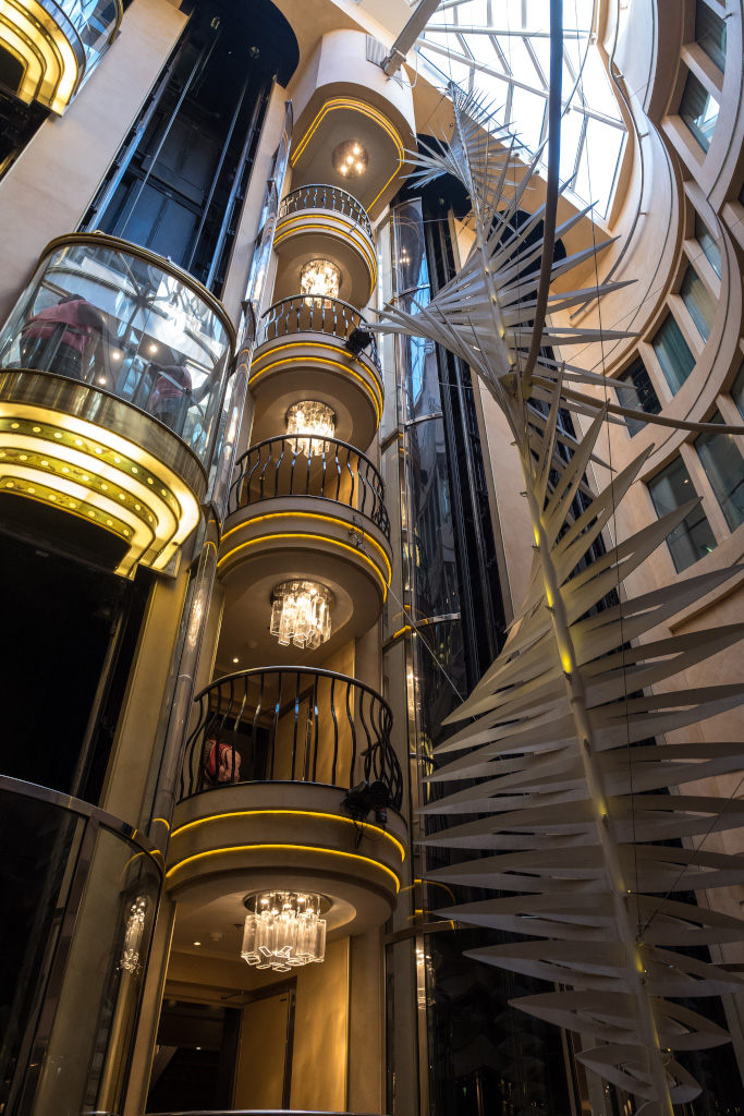 Ходить по пароходу и снимать интерьеры, как это делают все великие круизные критики, на этот раз было лениво. Да и судя по моему мегакрутому видеоролику о круизной жизни набравшем всего 66 просмотров, великого критика из меня не вышло. Так что так, буквально несколько фоток, в основном центральное помещение - атриум.
