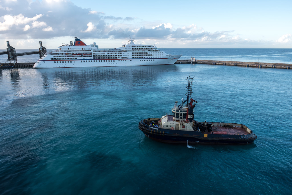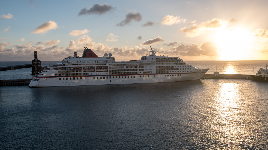 В положенное время мы были на борту и смотрели на закат и на круизный корабль под названием Europe.