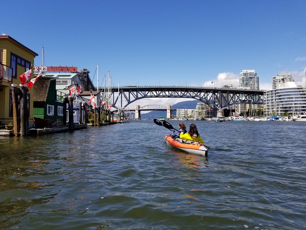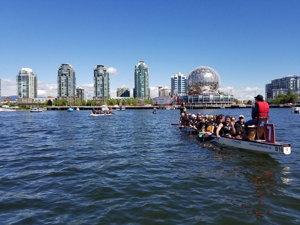Когда веслались на False creek, там были какие-то соревнования dragon boats. Самое интересное тут то, что когда подплываешь к такой лодке, то все тридцать человек в ней одновременно вопросительно смотрят на тебя. Ты им - "привет!" А они все кивают в ответ, "привет", дескать. "Что хотел-то?"
