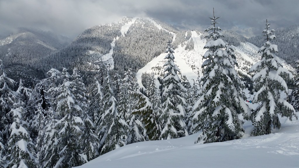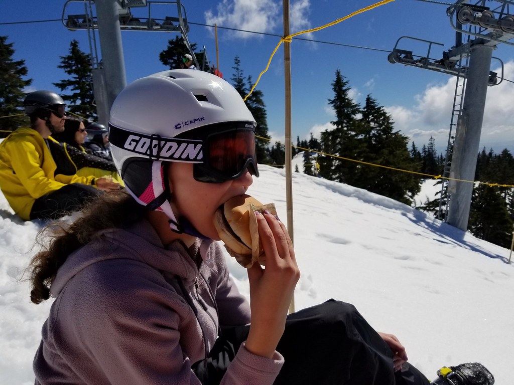 А это последний день лыжного катания. Точнее, гора уже закрылась, но потом они решили открыться еще на день. Да не просто открыться, но и накормить всех бесплатными бургерами. В тот день мы поставили рекорд по количеству спусков, съехав 21 раз с общим перепадом высоты 7км и 62км пройденного расстояния.