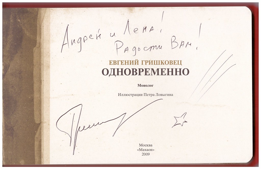 После концерта удалось пообщаться, пожать руку и подписать книгу. Книга Гришковца, оформление Ловыгина, два в одном, а тут еще и подпись автора.