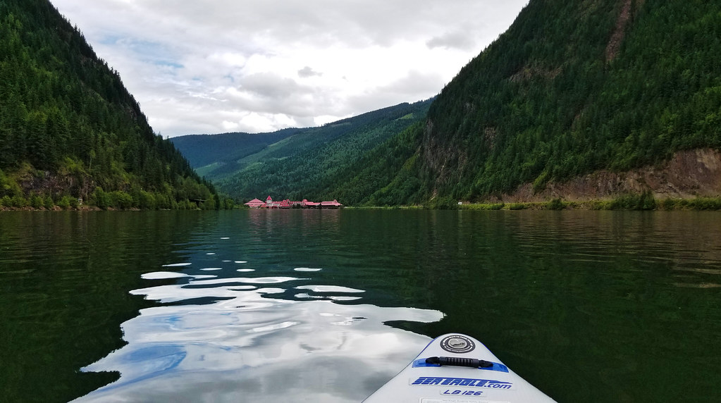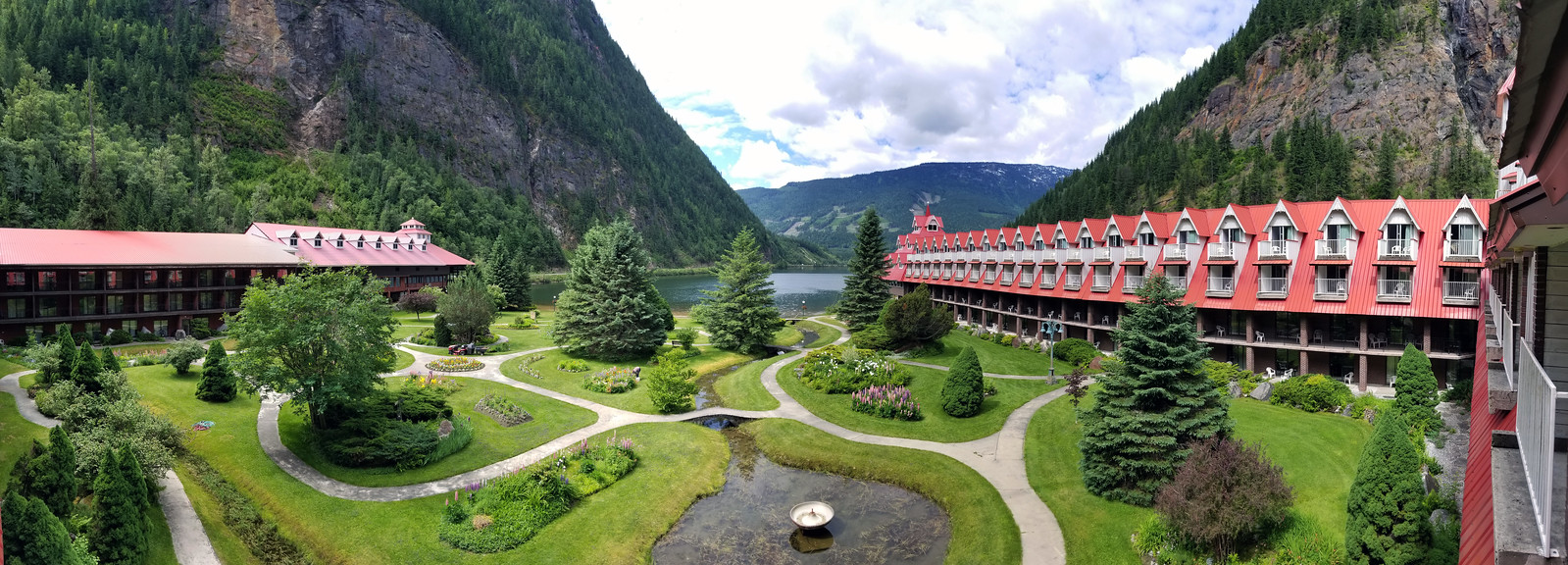 Если не полениться, и проехать на восток от Ванкувера километров 500, то непременно можно увидеть с дороги то, что сперва кажется каким-то миражом: в узком ущелье между нависающих вертикальных скал на берегу озера стоит дивный замок с красной крышей.
