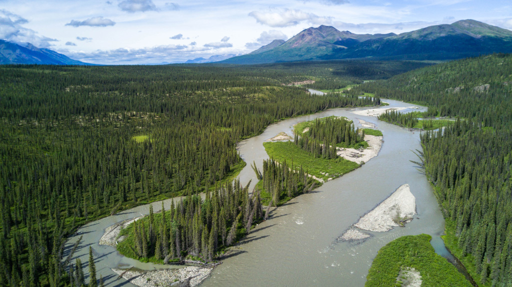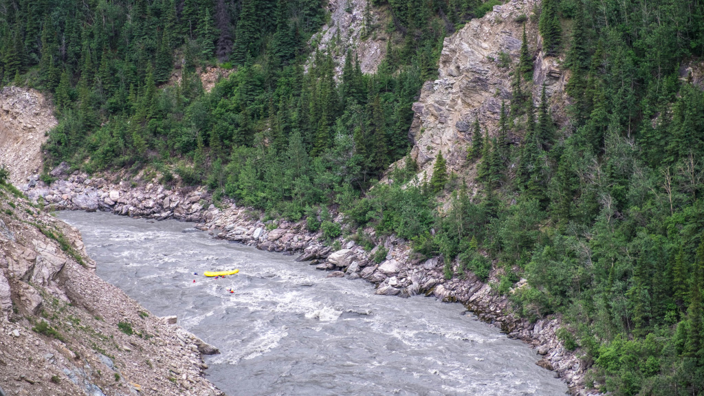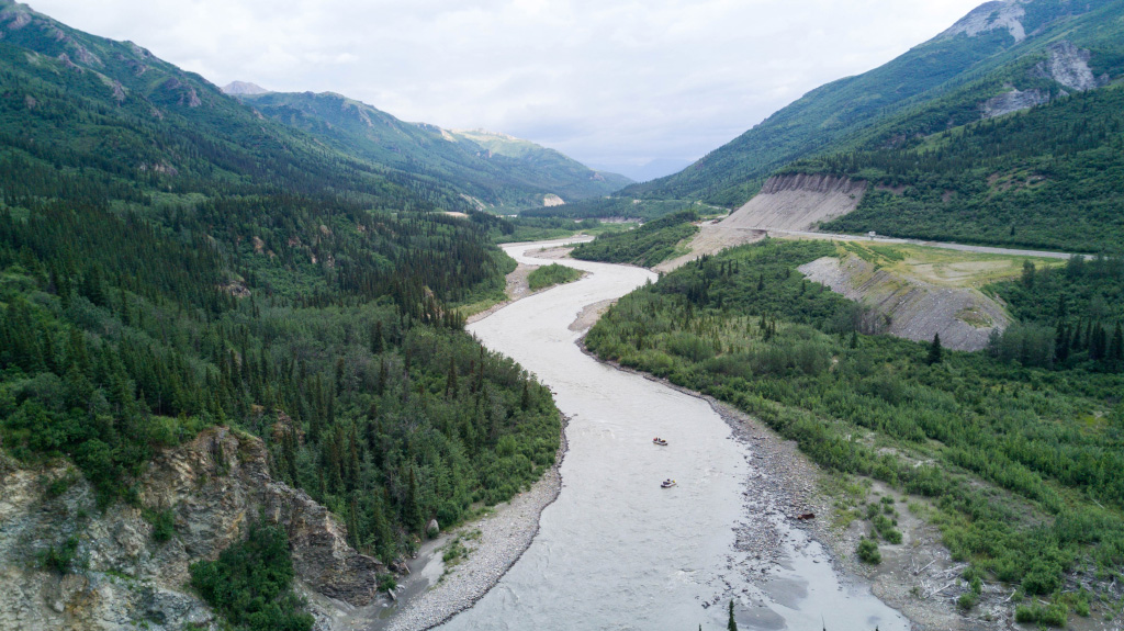 На реке Kantishna пролетарии катаются на бурлаках туристы занимаются рафтингом - сплавом на плотах.