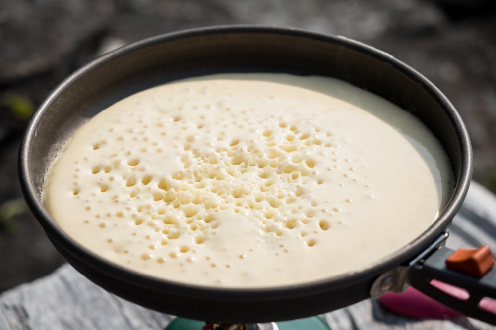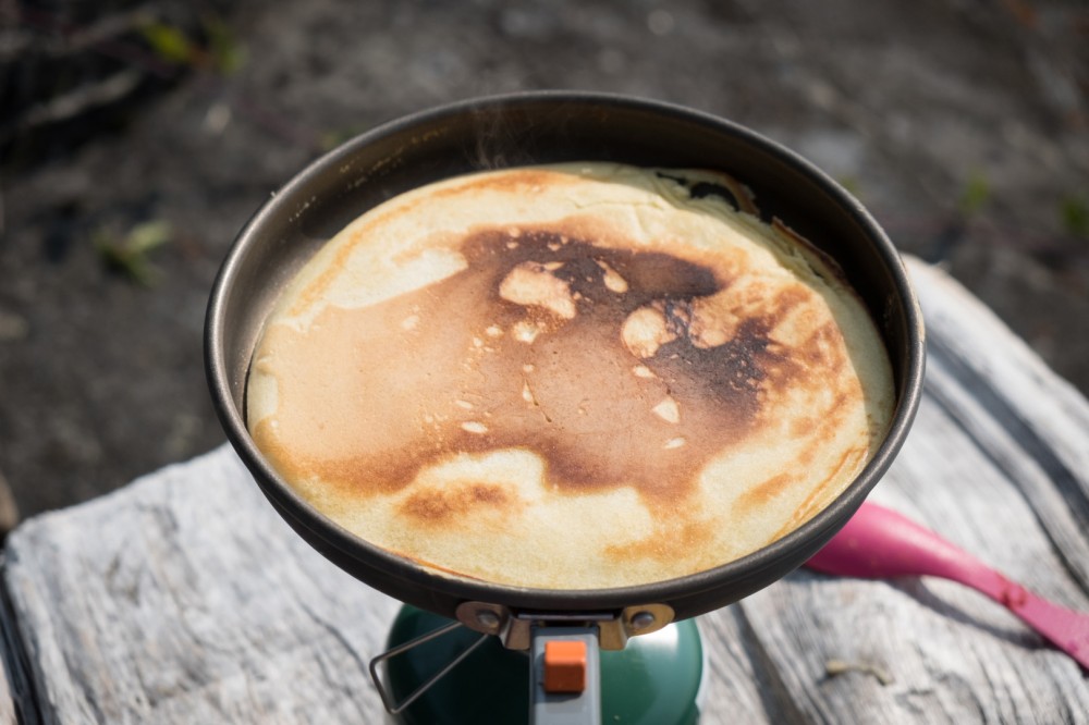 Утром варили Суп, и я впервые попробовал испечь в походных условиях блинчики.