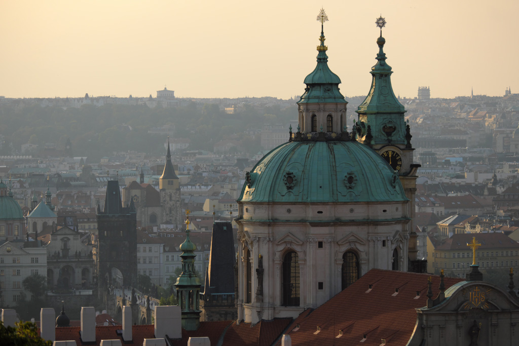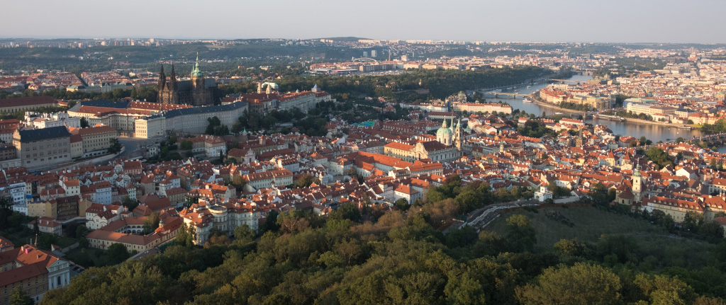 Чтобы подняться на Петршинскую башню есть две опции: идти пешком за 120 крон или подняться на лифте за 200. Легко догадаться, что мы выбрали страдать материально, а не физически. Вид стоил того.