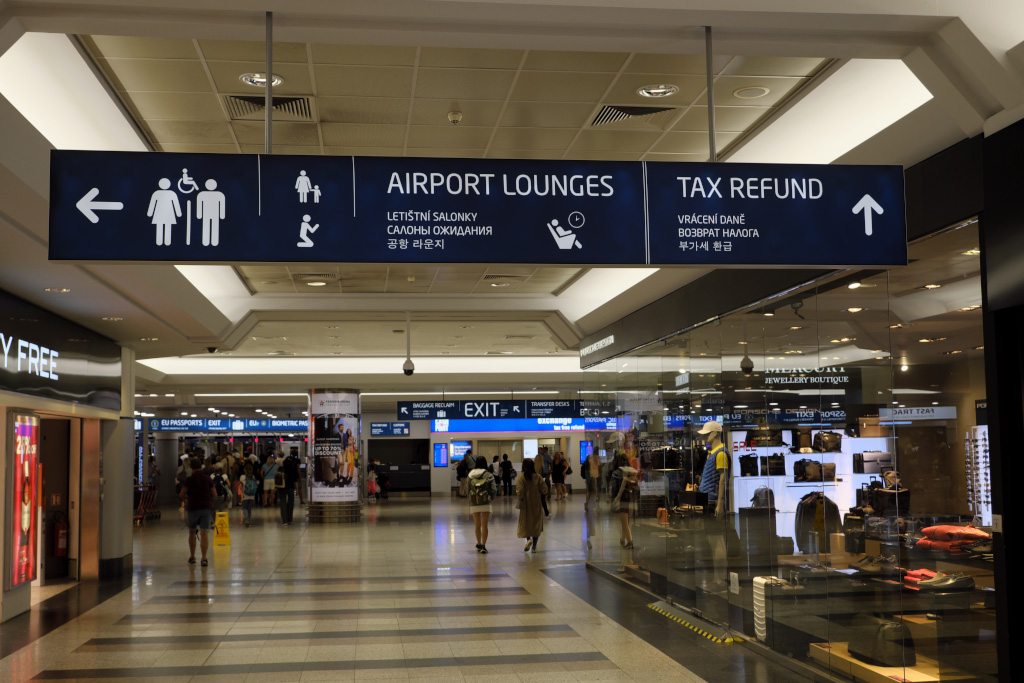 Надписи в аэропорту на английском, чешском, русском и... хм, корейском.