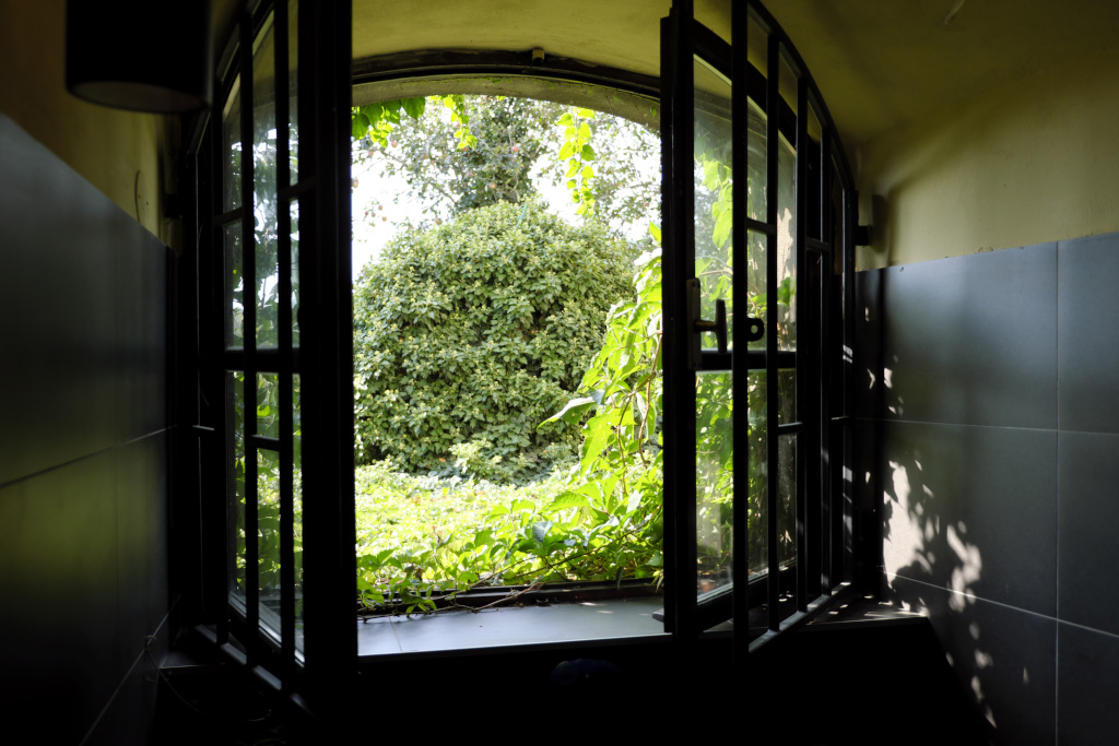 А туалет такой - с видом на яблоневый сад. Под окном, извините, писсуары.