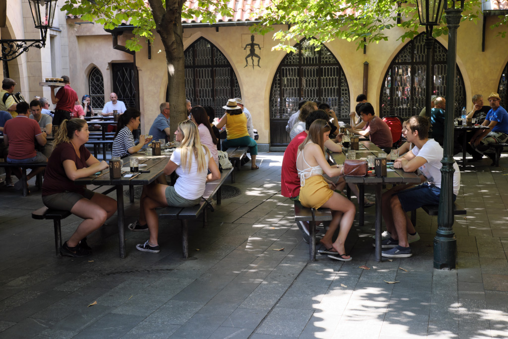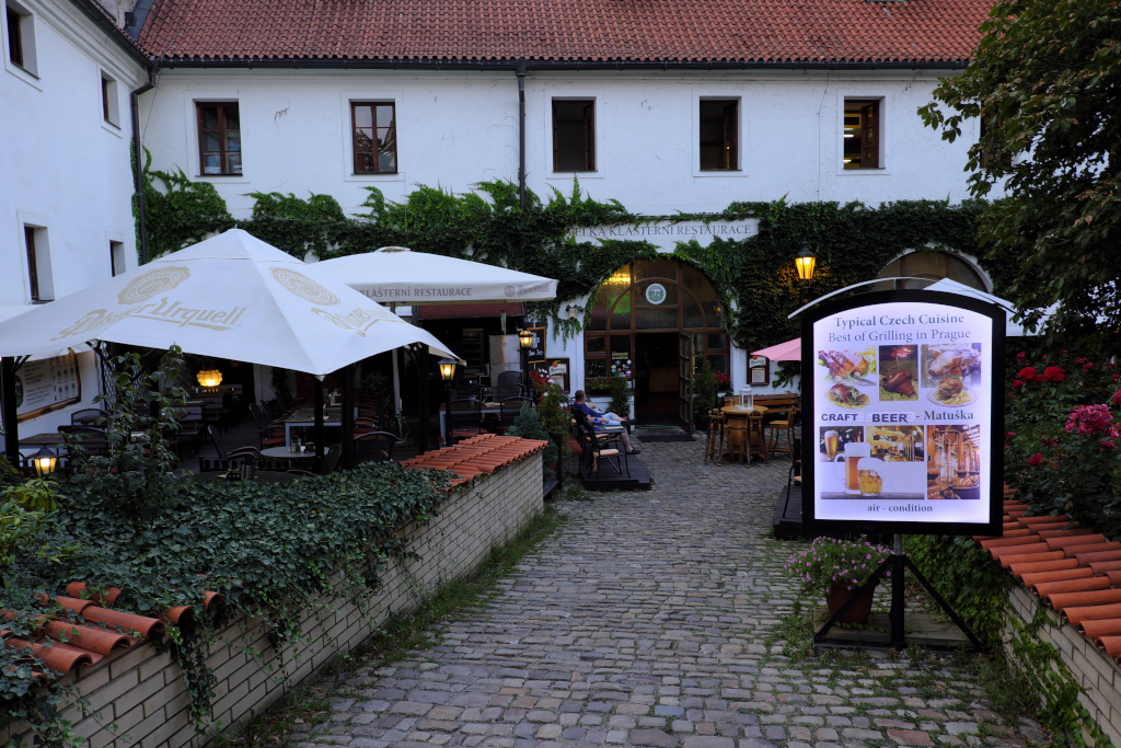 По плану, мы сперва должны были зайти в Velká klášterní restaurace - только там можно выпить пива Матушка Самовар (Domácí pivovar Matuška), которое мало известно туристам (мммм!), а уж потом идти в соседний Klášterní pivovar Strahov кушать "вепрево колено", что мы с удовольствием и осуществили.