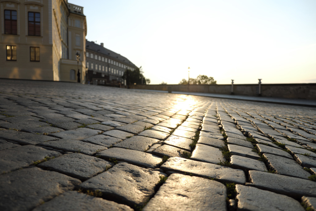 Напрявляемся в замок Пражский град. Все пока на мосту, улицы относительно пустынны.