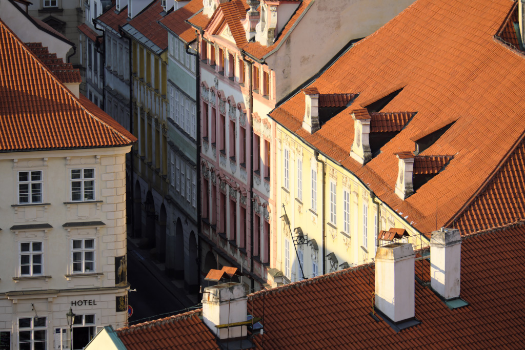 Визитная карточка Праги - красные черепичные крыши. Интересно, как черепицы держатся и не падают?