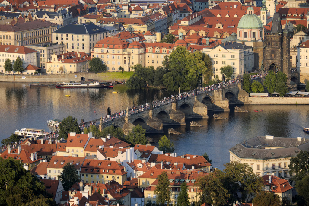 Очень хорошо видно Карлов мост и толпы туристов на нем. Зачем они там все собрались?