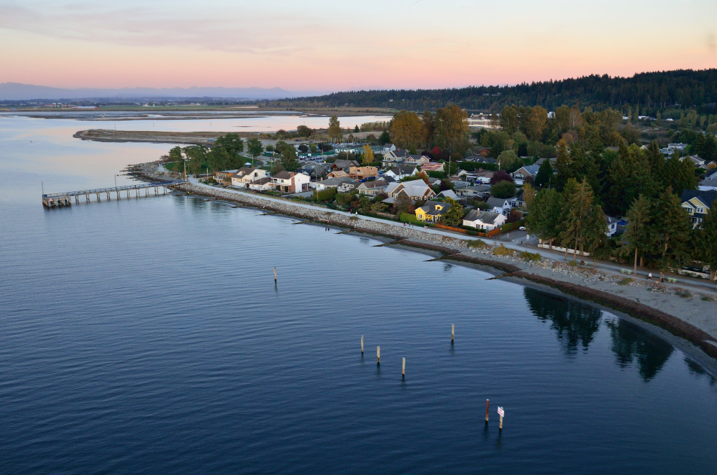 Вчера вечером полетали вдоль береговой линии вдоль White Rock. Это городок на окраине Большого Ванкувера, почти на границе со Штатами. Жилье здесь очень недешево, прежде всего из-за океанских видов. Ну а кто не хотел бы хижины на берегу моря?