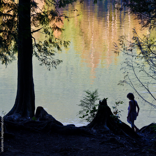 Upd: забыл картинку, исправляюсь. Это озеро Buntzen, популярное место для пикников и каякинга. На том меленьком острове в левом нижнем углу есть геокэш!