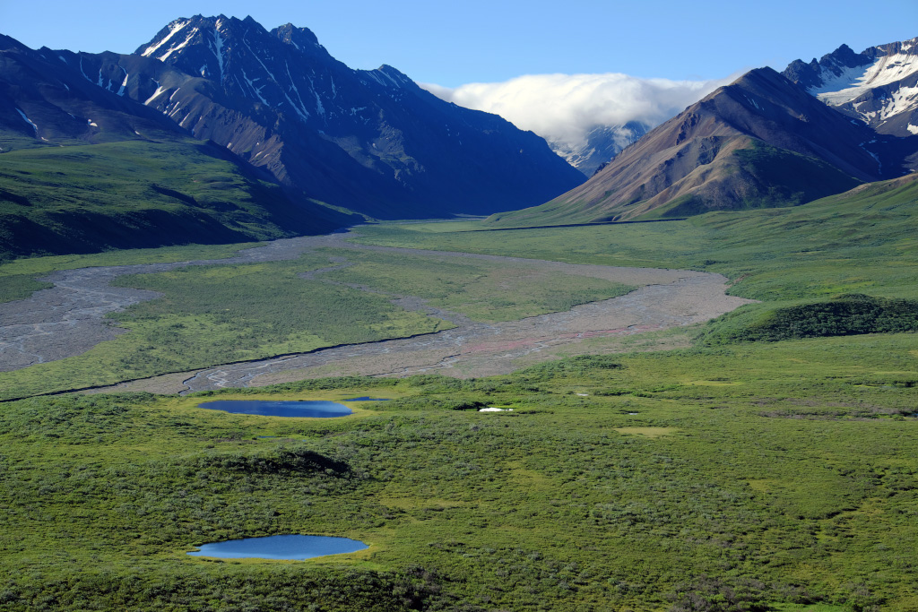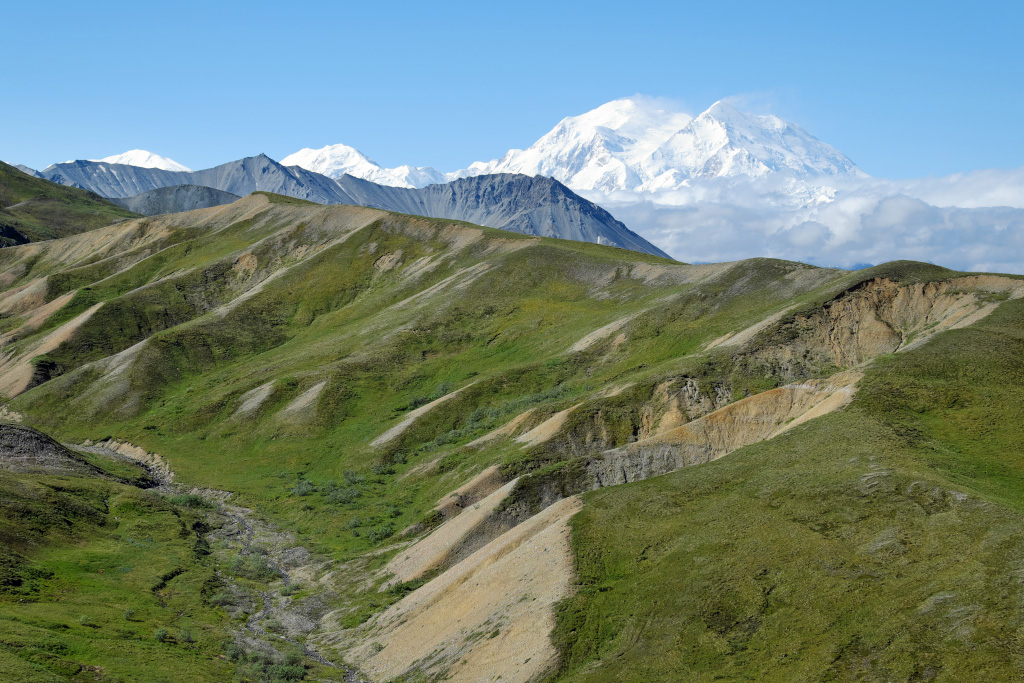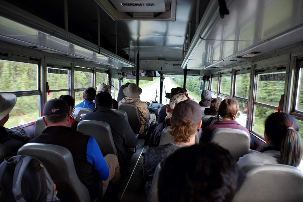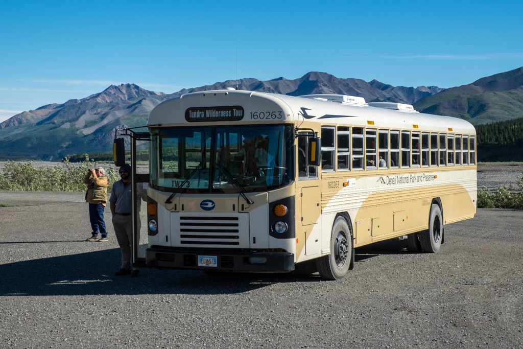 В этом парке всё не так: по дорогам нельзя ездить на машинах, а в горах нельзя хайкать по трейлам. И тем не менее, это один из самых известных и популярных национальных парков Аляски. Трейлов там просто нет. И насчет машин на дорогах не шутка: по единственной в парке дороге на своей машине можно проехать первые 15 миль, а дальше - только на специальных автобусах. Большинству вполне хватает проехать до конечной остановки и посмотреть на отражение знаменитой горы McKinley (она же Denali) в озере Wonder lake. Поездка занимает примерно 4 часа в одну сторону. Рано утром все садятся в такой автобус, и целый день едут, по дороге из окон фотографируя пейзажи и попадающихся навстречу зверей.
